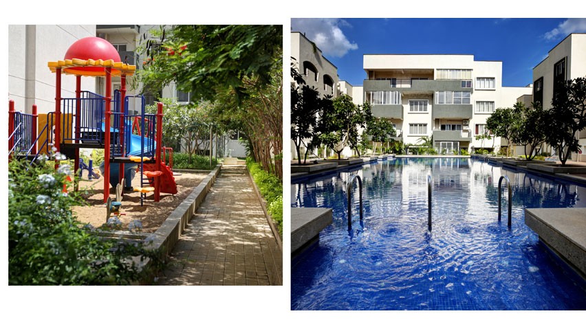 Vaishnavi Orchids, the first residential project in Bangalore to introduce the concept of “Villaments”, is a community of duplex villas offering an unmatched urban lifestyle to its residents. The homes congregate around a delightful courtyard featuring a vast pool. The courtyard is surrounded by blossoming treetops and blue skies and lends an old world community charm to the villaments.